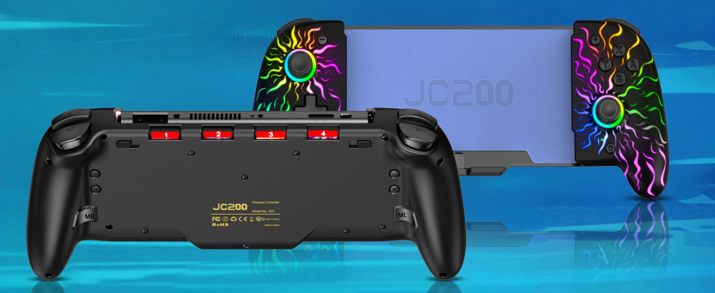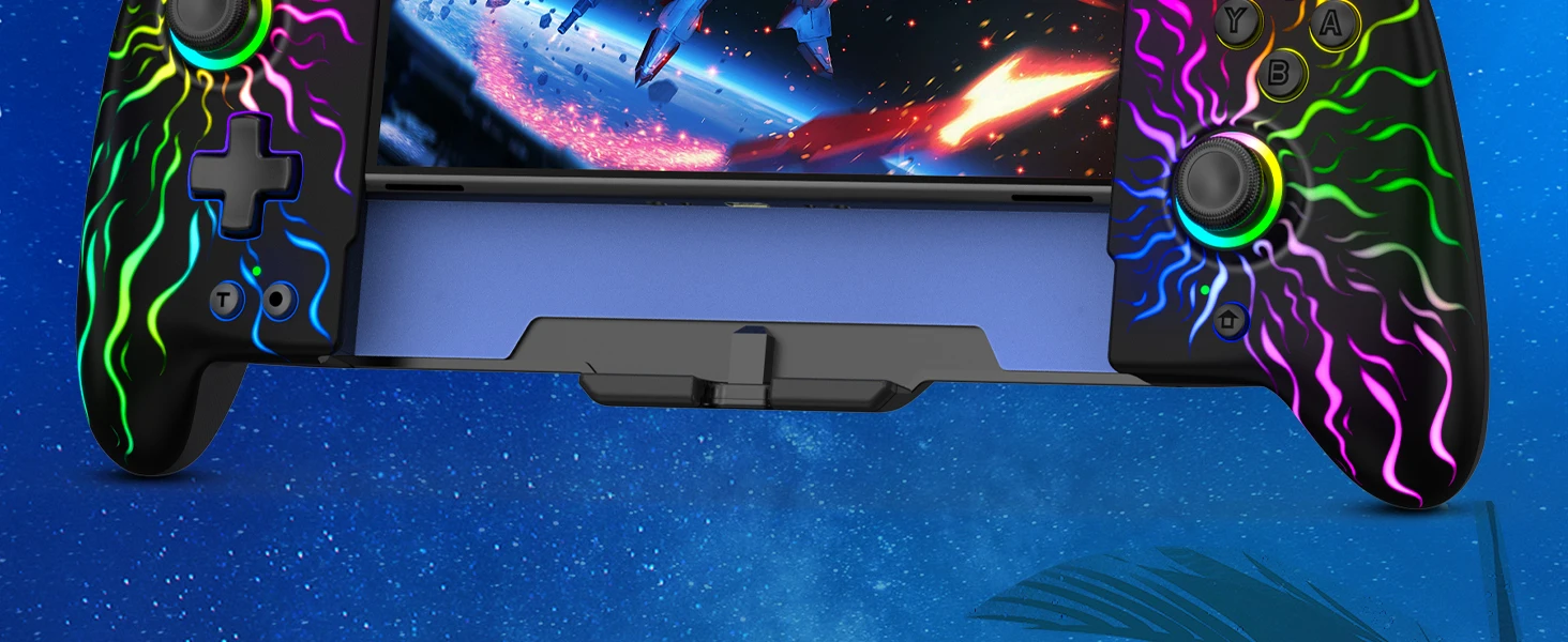 🎮Detailed Design: A console carabiner has been added to the back of the Switch controller, which securely locks the console in place and greatly improves its overall security. Additionally, anti-scratch pads have been incorporated into the contact surface between the Switch remote and console to prevent any scratches on the console's back. Moreover, the back now features four game card slots, allowing you to bring along four more of your favorite games while traveling.