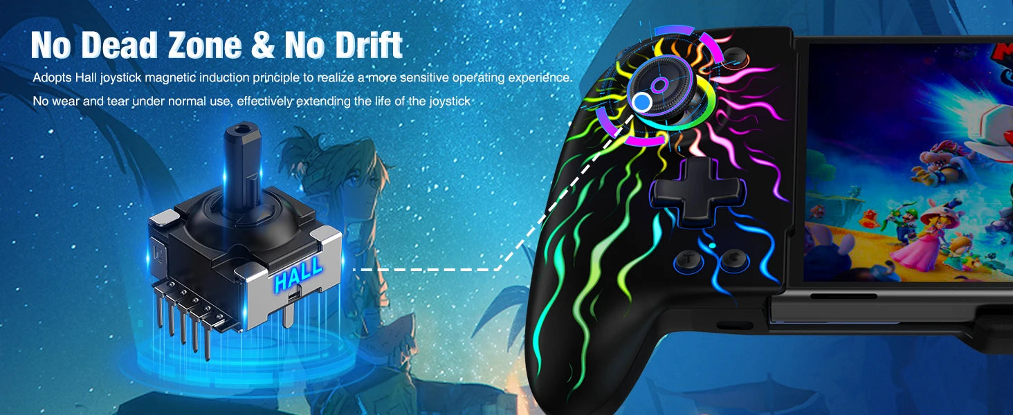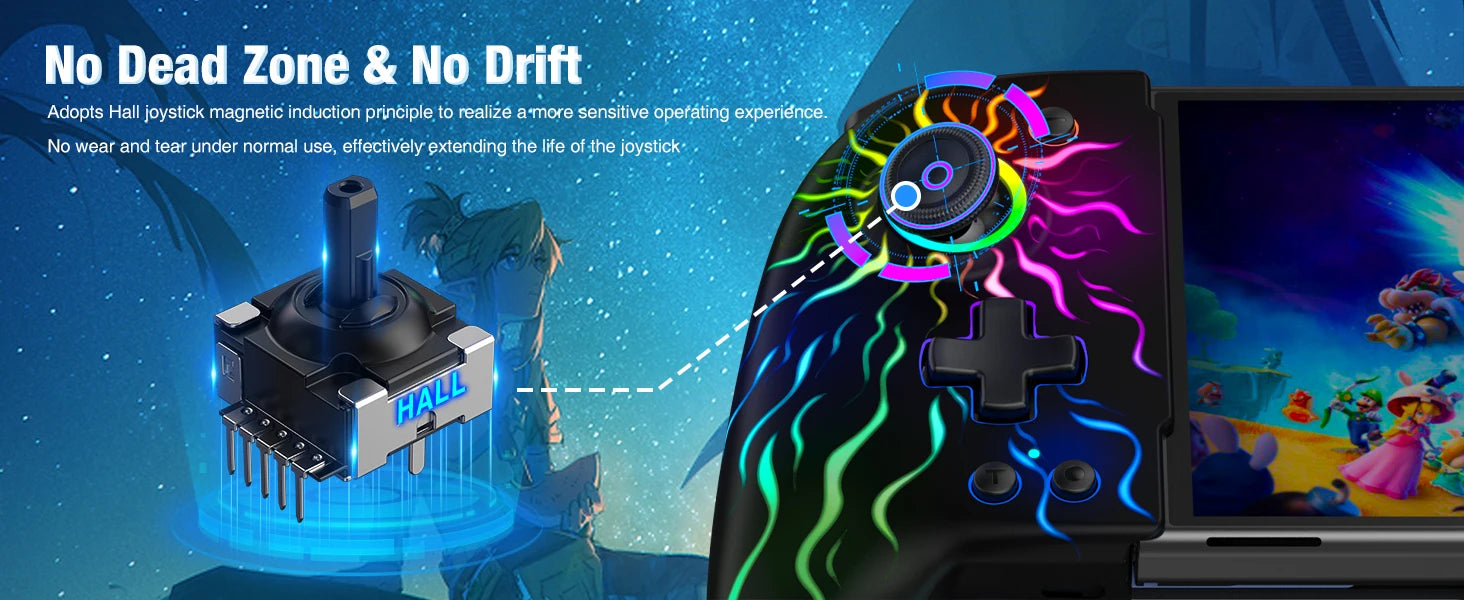 🎮Hall Sense Joystick Controller: This Switch controller comes with Hall Sense Joystick, the innovative electromagnetic induction technology allows your controller to never drift, you can precisely control your character in intense games, greatly extending the life of the controller.