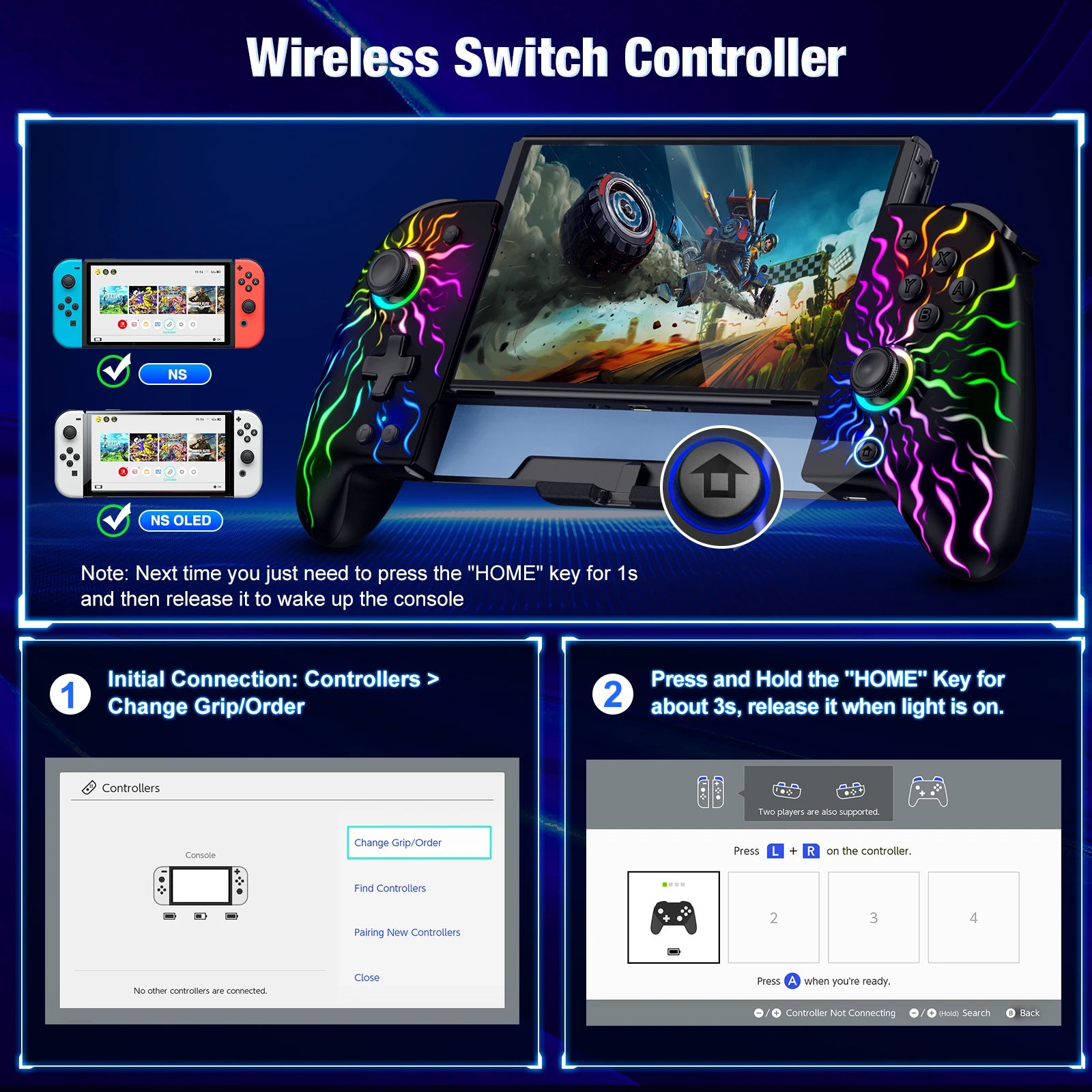 🎮Wireless Switch Controller & Wake-up Function: Some customers have provided feedback that wired One-Piece Switch controllers cannot connect to the console. So we have launched this wireless Switch controller. When using this controller for the first time, Simply press and hold the "HOME" button for about 3 seconds and the red signal light flashes to complete the connection. To wake up the console, simply press the "HOME" button for about 0.5s. It is very easy to operate.